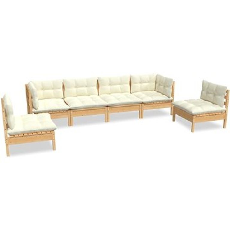 Shumee 6-dielna záhradná súprava krémové podušky masívna borovica, 3096196