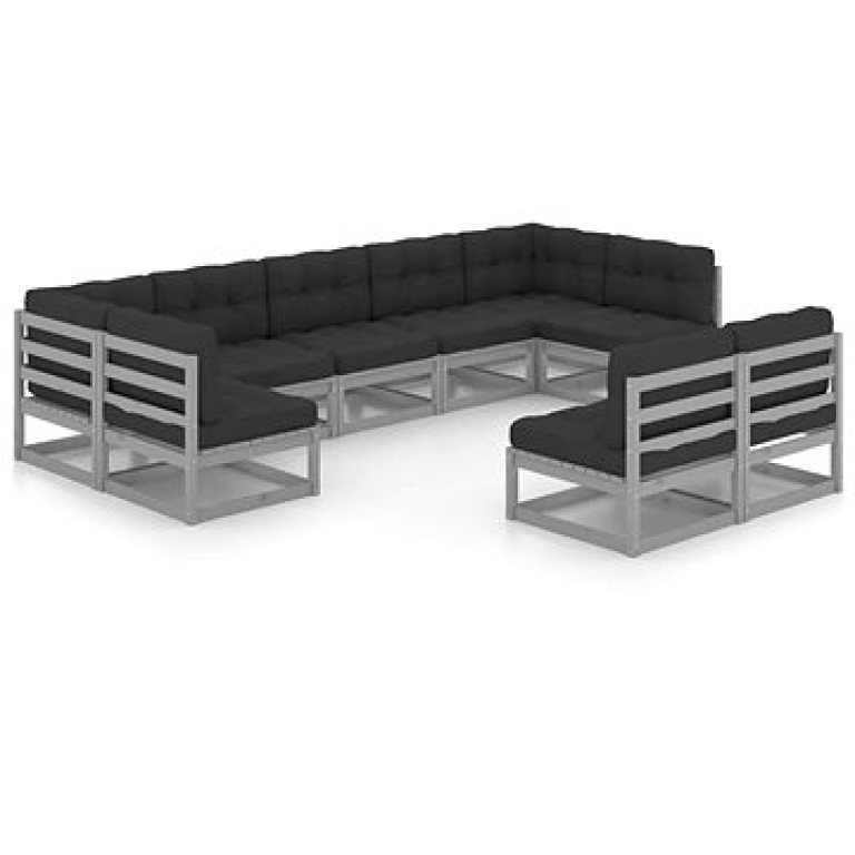 Shumee 9-dielna záhradná sedacia súprava podušky sivá masívna borovica, 3077216