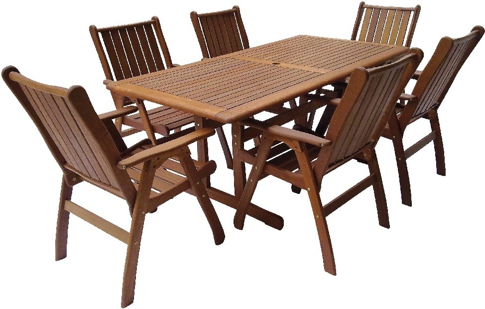 Záhradný nábytok MERANTI VICTORIA SET. Luxusná masívna stolová zostava 6 - tich kresiel a stola z exotického, veľmi trvanlivého a tvrdého dreva meranti. Určená do interiérov, exteriérov a pergolových priestorov.