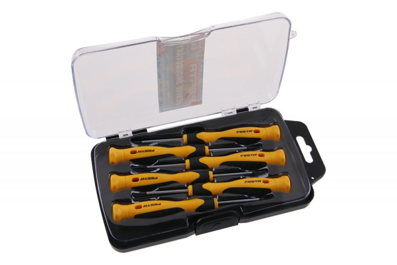 Skrutkovače jemné - (ploché a PH) sada 6ks v plastovom organizéri. CrV, magnetická koncovka. Sada obsahuje: 1.5; 2.0; 2.5 x 50 mm, PH 000x50 mm, PH 00x50 mm, PH 0x50 mm.