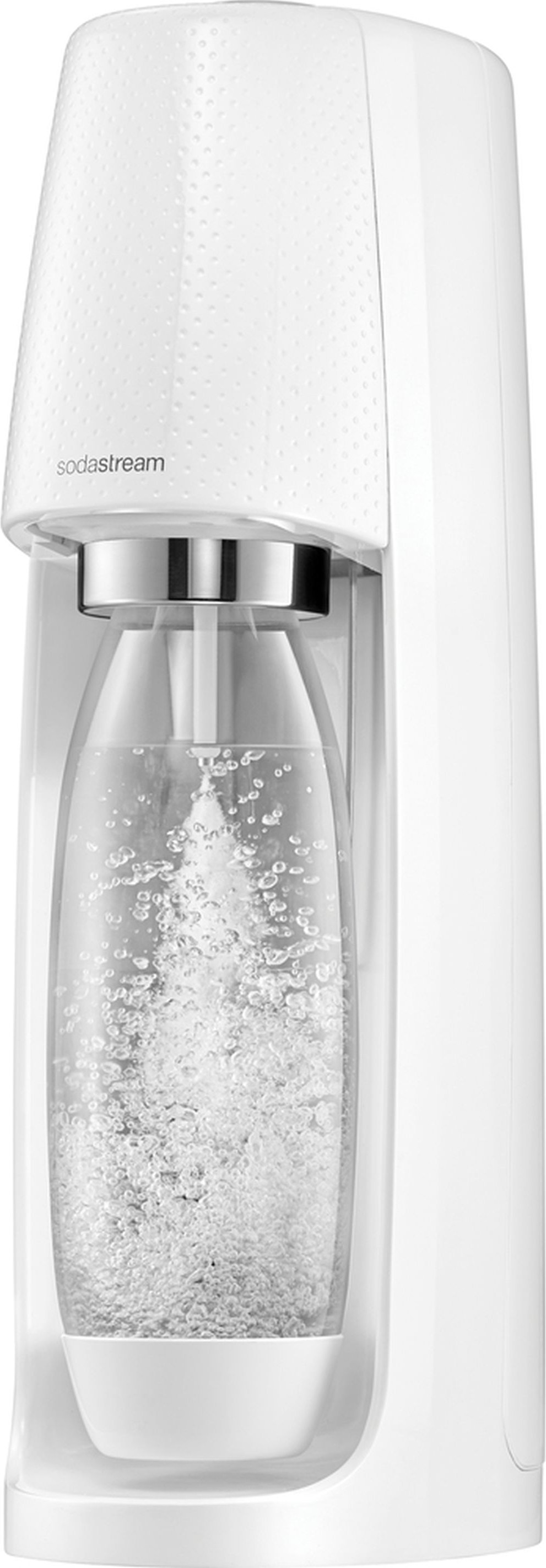 Prístroj Sodastream Spirit Black. Sada na výrobu domácej perlivej vody. Obsahuje výrobník Spirit s automatickou výrobou perlivej vody a nastaviteľnou mierou perlivosti, odolnú plastovú tlakovú fľašu a bombičku s náplňou CO2 až na 80l domácej perlivej vody.