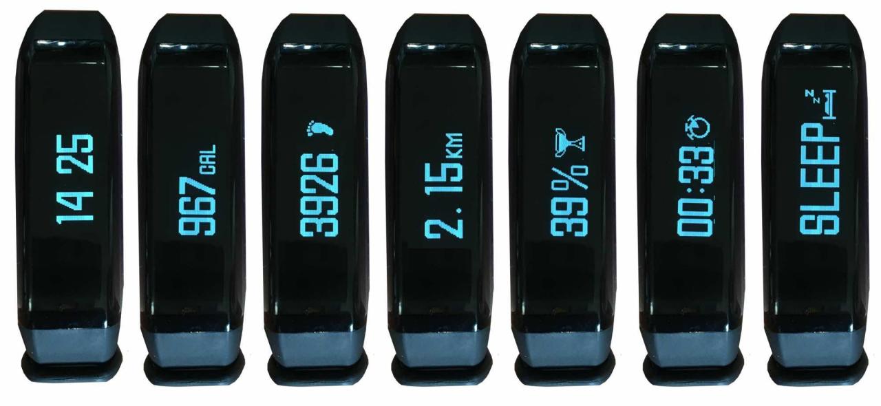 - Sledovanie aktivity: počet krokov, vzdialenosť, spotrebu kalórií, trvanie činnosti a plnení denných cieľov činnosti