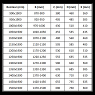 Technické dáta: Veľkosť: 110x190 cm Montáž: Univerzálny Vstup: skladaný Farba skla: Priehľadná Typ skla: tvrdené Hrúbka skla: 6 mm Profil: hliník Povrchová úprava: čierna Povlak pre jednoduché čistenie: Áno Vyrovnanie nerovností steny: Áno Nastavenie šírky: Áno Možné namontovať na bazénik alebo dlaždice: ...