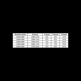 Technické dáta: Rozmer: 150x190 cm Montáž: Univerzálna Vstup: sklopný Farba skla: Transparentný Typ skla: Tvrdené Hrúbka skla: 6 mm Profil: Hliník Povrchová úprava: Chrome Obliečka na jednoduché čistenie: Áno Vyrovnanie nerovností steny: Áno Nastavenie šírky: Áno Možné namontovať na bazény alebo dlaždice: Áno Kovová rukoväť Súprava tesnení na odvod vody Hliníkový prah dverí (GT) Ean: 5903163388945