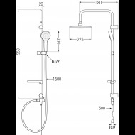 Technické dáta: Materiál stĺpika: Nerezová oceľ, ABS Povrchová úprava stĺpika: Chrome Výška: 950 mm Šírka stĺpika: 22 mm Vzdialenosť od steny: 380 mm Miska na mydlo Posuvný držiak na slúchadlo Nastaviteľné montážne držiaky Materiál dažďovej sprchy: Plast Povrchová úprava dažďovej sprchy: chróm / biela ...