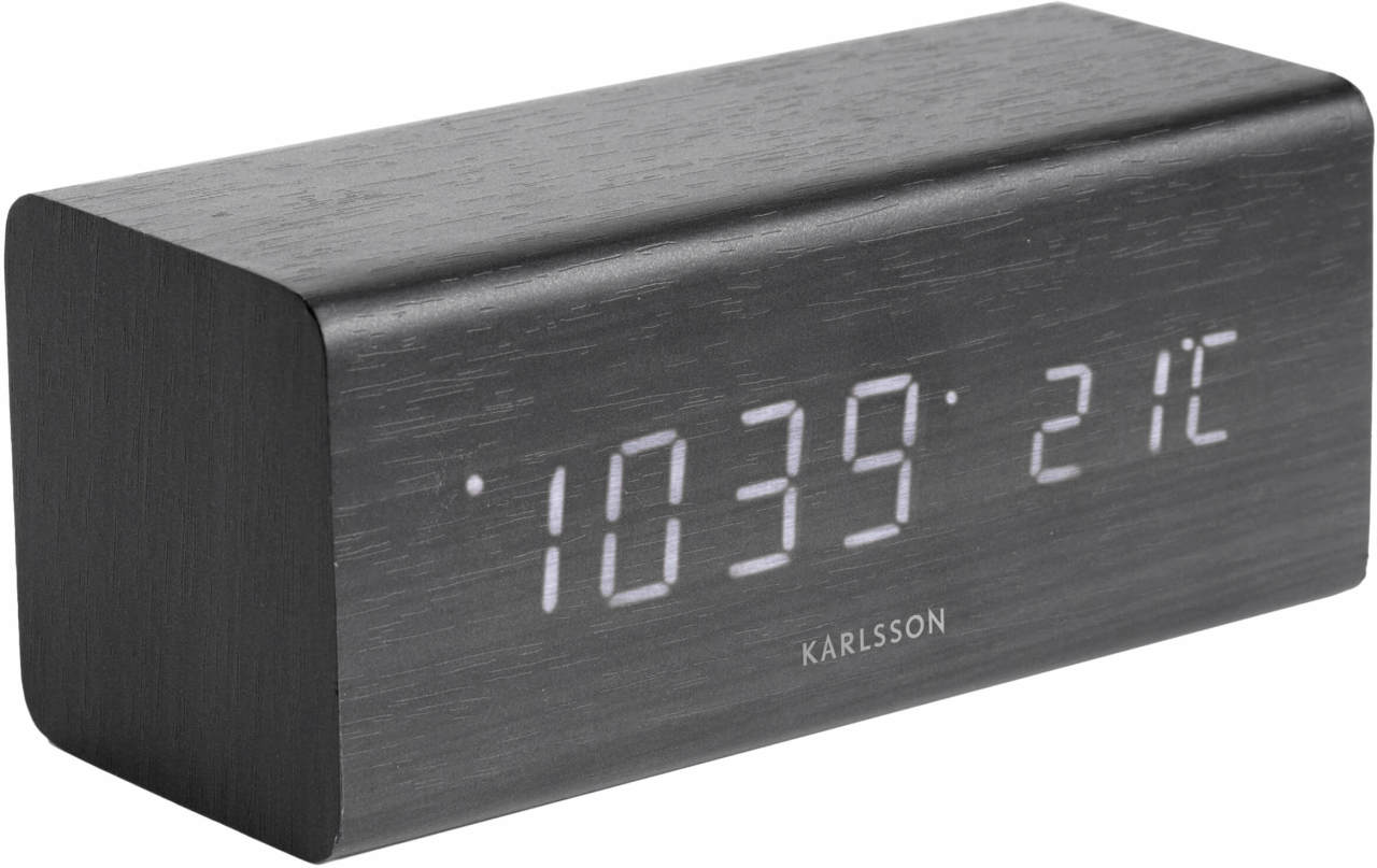 Holandská značka Karlsson prichádza so stolovými hodinami s budíkom v imitácii dyhy v odtieni wenge, ktoré spĺňajú všetky predstavy nadčasového dizajnu. Zabudnite na staré či plastové budíky, ktoré nie sú hodné moderných interiérov. Tieto stolné hodiny s budíkom sa stanú dominantou vášho nočného stolíka, a tak im ani po ránu nebudete vyčítať neúprosné prebudenie. Hodiny fungujú na 3 batérie AAA (nie sú súčasťou balenia). Možno ich však napájať aj cez USB kábel, ktorý je súčasťou balenia.Značka Karlsson pôsobí na trhu od roku 1999. So zastúpením vo viac než 80 krajinách sveta patrí medzi najobľúbenejšiu a najpredávanejšiu značku dizajnových hodín vo svojej triede na svete. Karlsson prichádza niekoľkokrát do roka s novými modelmi, ktoré pravidelne udivujú svoju originalitou a nevšednosťou. Ak od hodín očakávate dizajn a vkus, zvoľte značku Karlsson.