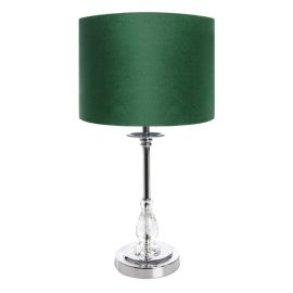 Dekoračná lampa so zamatovým tienidlom, šírka: (fi) 30 cm, dĺžka: 53 cm, farba: tmavozelená / strieborná, Zloženie: krištáľ + železo; polyester, Napájanie: CE 220-240V 50Hz, Žiarovka: 1 x E27 MAX 40W, Energetická trieda : A.