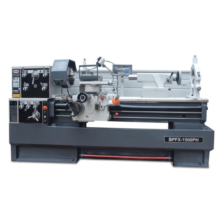 Univerzálny sústruh Proma SPFX-1500PH s digitálnym odmeriavanímUniverzálny sústruh SPFX-1500 PH s digitálnym odmeriavanímUniverzálny a výkonný sústruh, vysoko presný s veľkou priechodnosťou vretena (až 82 mm) as digitálnym odmeriavaním všetkých 3 os.
