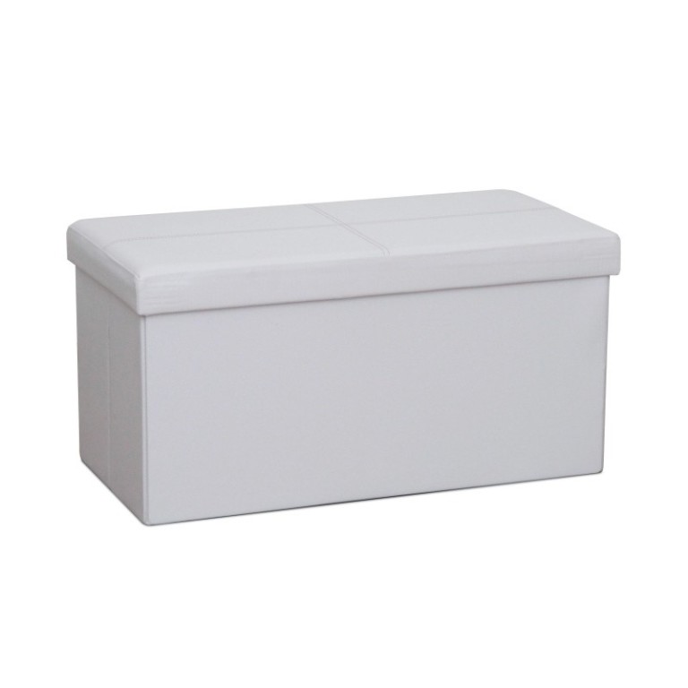 Skladateľný taburet s úložným priestorom IMRA. Farba: čierna. Materiál: ekokoža. Rozmery (ŠxHxV): 76x38x38 cm.
