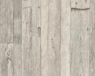 Tapeta na matnom, jemne štruktúrovanom podklade v odtieňoch bledosivej farby imitujúca práchnivejúce drevo. Rozmer tapety je 0,53 × 10,05 m.