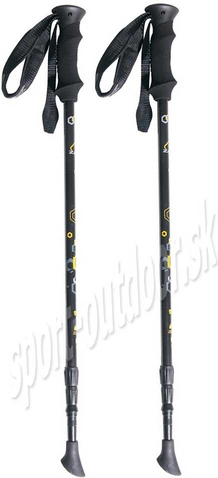 Extra ľahké teleskopické trekkingové palice, ktoré sú vhodné pre náročnejších. Horný diel je vyrobený z karbónu, stredný a spodný diel z hliníka, karbidový hrot, 3-dielna koštrukcia, vonkajší klip systémom uzamykania, protisklzová rukoväť. Súčasťou balenia sú všetky tri druhy koncoviek. Vhodné pre náročnejšiu turistiku.karbidový hrot.3-dielna konštrukcia s klip zámkom.protisklzová rukoväť.