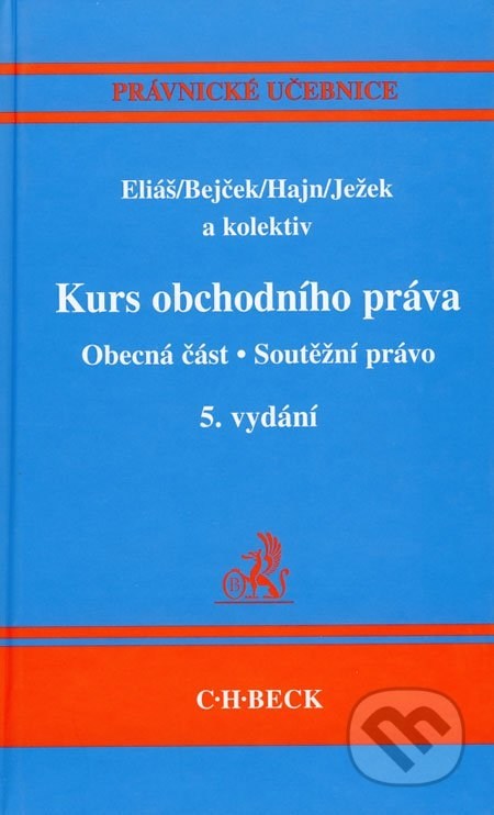 Již páté vydání úspešné publikace sleduje koncepci předchozích vydání. Učebnice zahrnuje úvodní výklad o místu obchodního práva v právním systému a o jeho pramenech, na které navazují kapitoly věnované základním pojmům a institutům obchodního práva (podnikatel, podnik, prokura, obchodní firma, obchodní rejstřík aj.) a text o právní úpravě úpadku. Zejména pasáže o obchodním rejstříku a o úpadku jsou podstatně přepracovány vzhledem k nové právní úpravě. Publikace dále zahrnuje text o právu hospodářské souteže zabývající se nekalou soutěží a nedovoleným omezováním souteže. Poslední část knihy je věnována právu průmyslového vlastnictví v obchodních vztazích.Dátum vydania: 15.5.2007Edícia: Právnické učebniceVydanie: 5.Väzba: viazanáISBN: 978-80-7179-583-4Strán: 610Formát (mm): 145x230.