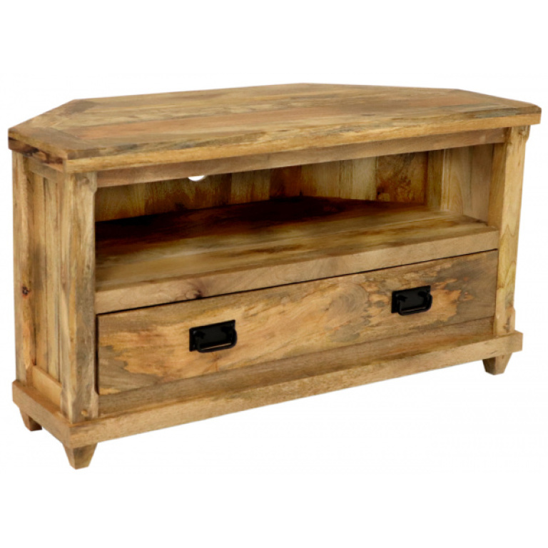 TV stolík rohový z masívu Devi je vyrobený z kvalitného masívneho mangového dreva.TV stolík rohový je vyrobený z masívu mango, má zásuvku s kovovými úchytmi a odkladací priestor na elektroniku. TV stolíky z masívu, ktoré máme skladom, si môžete pozrieť v našom showroome. Indický koloniálny nábytok mango masív.