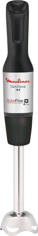 Tyčový mixér MOULINEX DD850830 SLIM FORCE patrí do radu ponorných ručných mixérov. Stane sa vašou každodennou šikovnou pomôckou do kuchyne a vaše jedlá budú kvalitne rozmixované. Má možnosť nastavenia dvoch rýchlostí + turbo. Príkon tyčového mixéra je 700 W. Čo sa týka jeho obsluhy, je veľmi jednoduchá a to aj vďaka jeho pohodlnému držadlu. Tyčový mixér MOULINEX DD850830 SLIM FORCE má v príslušenstve nádobu na mixovanie, ktorej objem je 800 ml, minisekáč s objemom 500 ml, nerezovú šľahaciu metlu. Materiály, z ktorých je vyrobený sú matný nerez a plast. Pomôcka v kuchyni Tyčový mixér MOULINEX DD850830 SLIM FORCE je výborným pomocníkom do každej kuchyne. Zjednoduší a urýchli vám prípravu vašich obľúbených pokrmov. S jeho pomocou pripravíte mnoho zaujímavých a chutných pokrmov. Stane sa vašou každodennou šikovnou pomôckou a vaše jedlá budú kvalitne rozmixované. Pomôže vám napríklad pri výrobe krémových polievok, rôznych omáčok a mnohých iných pokrmov. Jeho výkon je veľmi dobrý. Čo sa týka jeho rýchlosti mixovania, má možnosť nastavenia dvoch rýchlostí + turbo. Vďaka tomu si viete prispôsobiť správnu rýchlosť vašej práce k danej potravine a vašim potrebám. Pri maximálnej potrebe je vhodné použiť rýchlosť turbo a vaše jedlá budú dokonale vymixované. Príkon tyčového mixéra MOULINEX DD850830 SLIM FORCE je 700 W.