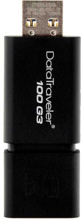 DataTraveler 100 Generation 3 (G3) je štýlový čierny USB kľúč, ktorý môžte zobrať všade so sebou. Je cenovo dostupný a umožňuje Vám v okamihu dáta zdieľať, uložiť alebo používať. Bol zostrojený s dôrazom na jednoduchosť o čom svedčí aj dizajn bez ochranného krytu (klobúčiku), ktorý sa často stráca. Napriek tomu je USB port v bezpečí pretože je zasúvateľný. DataTraveler 100 G3 si je možné prispôsobiť vďaka programu známemu ako Kingston Co-Logo, ktorý Vám pomôže zviditeľniť svoju firmu alebo oragnizáciu vytlačením jej loga na tieto kľúče. Keď to všetko zhrnieme dostaneme spoľahlivé, cenovo-dostupné riešenie na uloženie dát, ktoré sú dostupné vždy a všade.