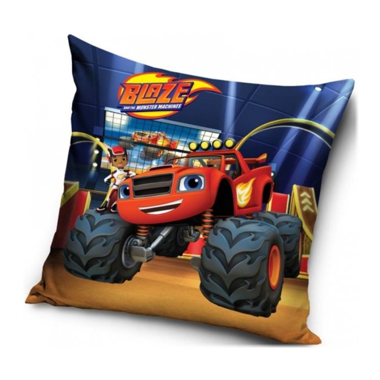 Vankúšik Plamienok a štvorkoláci – Blaze and The Monster Machines. Povlak vankúša je vyrobený z príjemne jemného nekrčivého materiálu a má zapínanie na zips. Obe strany zdobí rovnaký motív z animovaného seriálu o Plamienkovi, červenom terénnom autu, a a jeho vodičovi Aj.