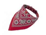 Módnu kožený obojok s textilným šatkou. Obojok vyrobený z hovädzej kože. Vhodné pre obvod krku 30-41cm. Farba šatke a obojku je červená.