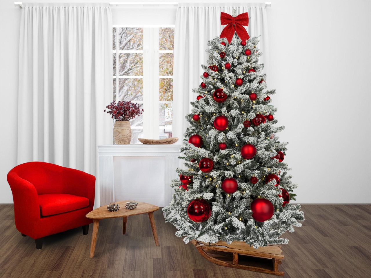 Laalu Ozdobený stromček ČERVENÉ VIANOCE 210cm 73ks ozdôb a dekorácií
