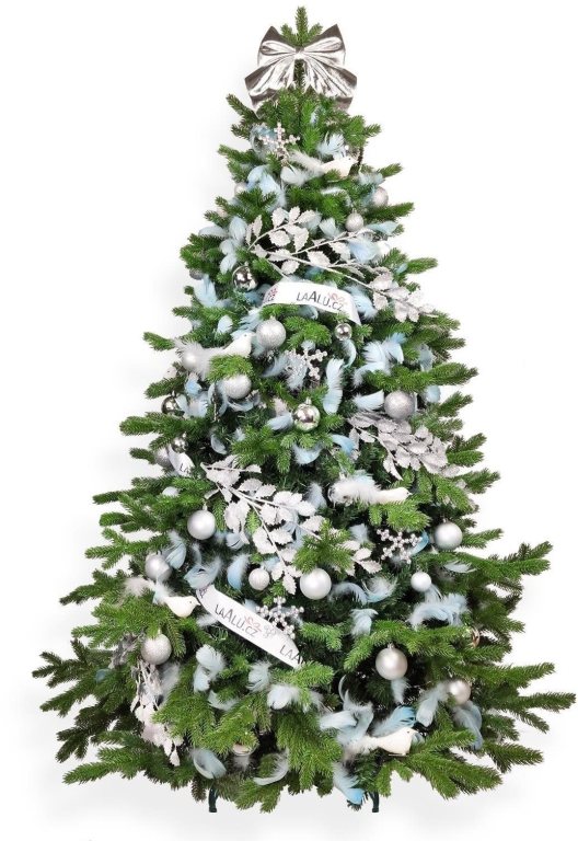 Laalu Ozdobený stromček NEBESKÉ STRIEBRO 270cm so 131ks ozdôb a dekorácií
