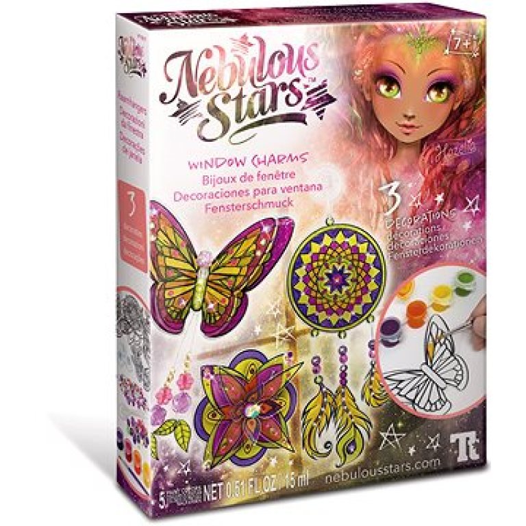 Kreatívna súprava – 13 šablón na tvorbu, 5 farieb na sklo, štetec, korálky, šnúrky, kamienky, 3 prísavky Vytvorte si originálne dekorácie vďaka kreatívnej sade Nebulous Stars a zapojte svoju fantáziu. Sada kčarovných ozdôb obsahuje 13 krásnych predpripravených šablón, ktoré si pomocou priloženého výtvarného príslušenstva môžete vyzdobiť podľa svojich predstáv. K dispozícii máte 300 rôzne farebných kamienkov, 5 výrazných farieb na sklo, štetec a 3 gumové prísavky. Nechýbajú ani najrôznejšie korálky, ktoré možno zavesiť na trblietavý povrázok, ktorý je tiež súčasťou balenia. So sadou magických ozdôb Nebulous Stars si tak môžete vyrobiť napríklad motýľa, lapač snov či kvetinu. Finálny výsledok prežiari celú izbu a bude vyzerať čarovne nielen na okne. Kľúčové vlastnosti čarovných ozdôb Nebulous StarsKreatívna sada na výrobu originálnych ozdôb nielen na oknáBalenie Nebulous Stars obsahuje 13 šablón na tvorbu, 5 farieb na sklo, 3 gumové prísavky a.