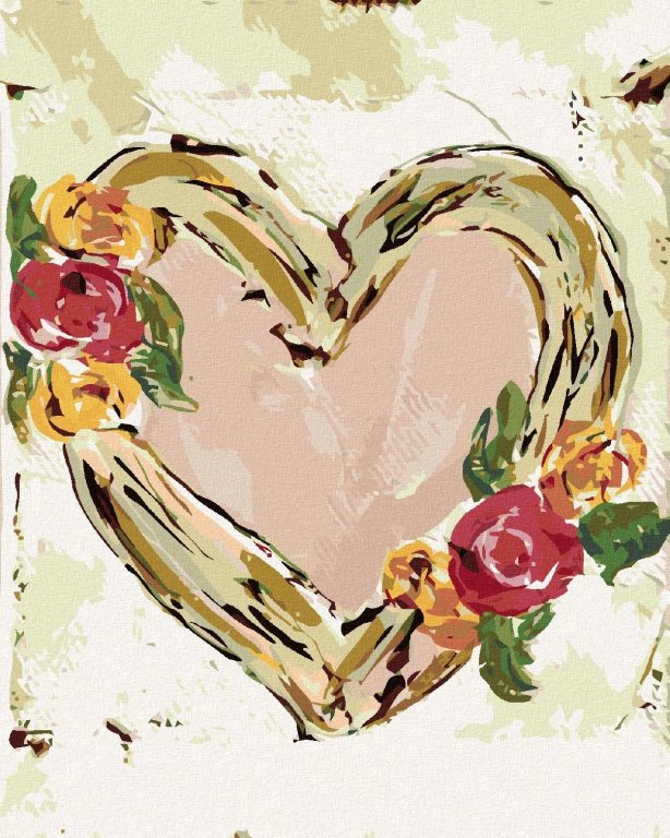 Zuty Ružové srdce s kvetmi (Haley Bush), 40x50cm plátno napnuté na rám