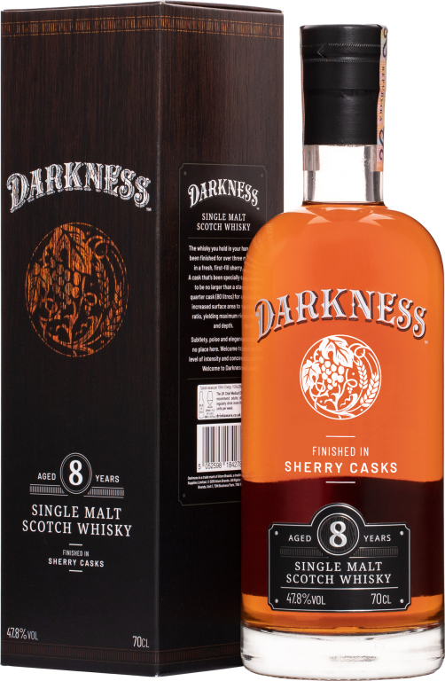 Odvážna, originálna a výrazná whisky, ktorú sa oplatí ochutnať! Darkness 8-ročná škótska whisky je singlematka, ktorá 8 rokov zrela v sudoch po bourbone a následne minimálne 3 mesiace v sudoch po Olorosso sherry. 8-ročná whisky Darkness vznikla už ako stála edícia špeciálnej a rovnomennej série whisky, ktorá bola kedysi dostupná iba vo veľmi limitovanom množstve. Vychutnajte si jej lahodný chuťový profil, ktorý tak výrazne ovplyvnilo zrenie v sudoch po sherry, aj vy! Vôňa: sladká, pomarančová kôra, arašídy, čokoláda, korenie, sušené čerešneChuť: amaretti sušienky, hrozienky, slivky, jemný dotyk zemitého dubuZáver: jemne olejnatý s náznakom dymu a výraznou čokoládou Ocenenia:dvojité zlato - Independent Merchant Single Malt, San Francisco World Spirits Competition (2020)zlato - Speyside Single Malt 12-ročné a mladšie, World Whiskies Awards (2020)zlato - Speyside Single Malts do 12 rokov, The Scotch Whisky Masters (The Spirits Business, 2020)bronz - Scotch Single Malt, Speyside, International Wine & Spirit Competition (2019).