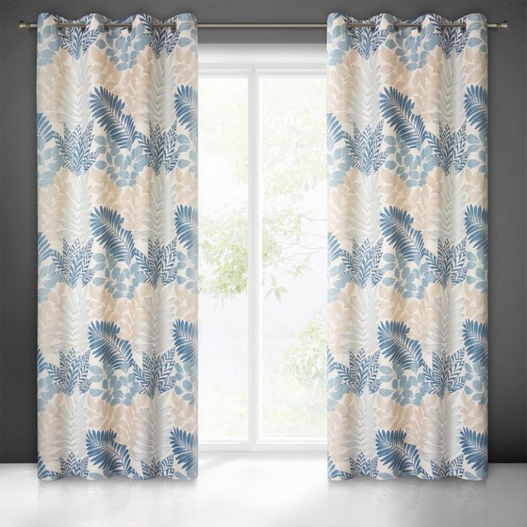 Záves so štruktúrou prírodnej tkaniny s potlačou šírka: 140 cm, dĺžka: 250 cm, farba: prírodná/modrá, zloženie: 100 % polyester.