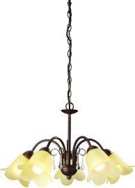 Klasický luster MASSIVE s kvetinovým motívom. Séria CHARM. Svetelný zdroj: 5x E14 / max.60W, výška: 850mm, šírka: 550mm, priemet: 550mm, prevedenie: hnedá / kov / sklo farbené, v predaji bez svetelnéh.