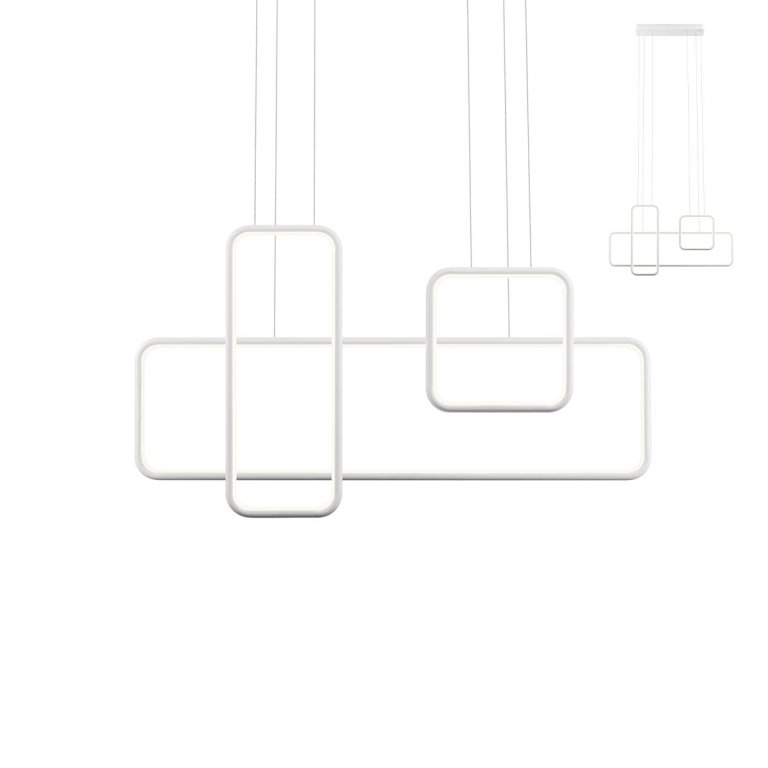 Závesné interiérové svietidlo vybavené LED SMD diódami, hliníková a kovová konštrukcia lakovaná v matnej bielej farbe, difúzor biely opálový so silikónom.