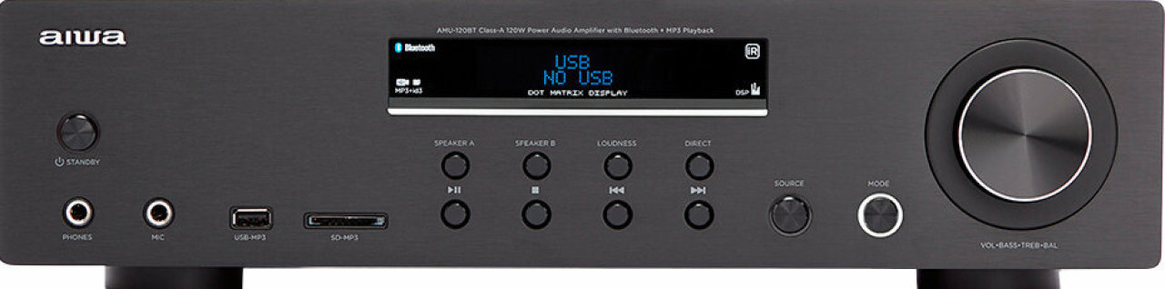 120W RMS stereo zosilňovač s bluetooth a USB/SD MP3 prehrávačom. Predný panel z eloxovaného hliníka Digitálny otočný ovládač z hliníku Biele LED ambientné podsvietenie pod displejom na prednom paneli. Tlačidlo LOUDNESS pre vylepšenie zvuku v noci. Vstavaný prijímač BT v5.0 s rolovaním informácií o médiách ...viac