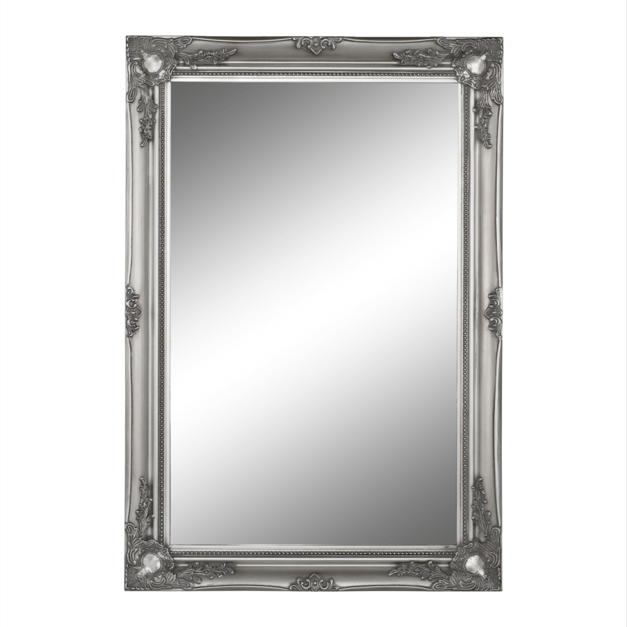 Zrkadlo MALKIA TYP 7 s dreveným rámom striebornej farby. Rozmery (ŠxV): 64x94 cm.