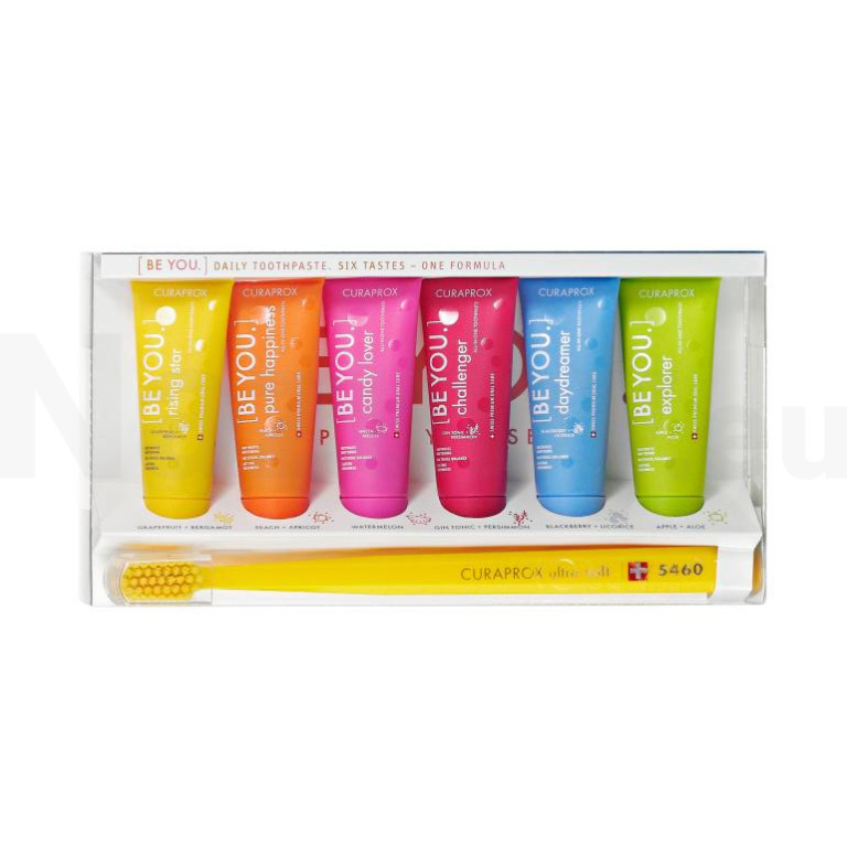 Zubná pasta – s bieliacim účinkom, prírodná a BIO, ochrana ďasien, ochrana skloviny, ochrana pred zubným kazom, univerzálne.Zháňate kvalitnú zubnú kefku, ktorá vám pomôže proti zubným kazom? Zvoľte kombináciu zubnej pasty a zubnej kefky CURAPROX. Zubná pasta pomáha udržiavať zuby prirodzene biele, zdravé a odolné voči zubným kazom. Obsahuje prírodné výťažky s antibakteriálnymi a regeneračnými účinkami. Zubná kefka CURAPROX sa šetrne a účinne stará o ďasná a zuby vďaka svojim jemným vláknam. Je vhodná pre citlivé zuby a postará sa ovaše zuby aj ďasná ako za sucha, tak za vlhka. Značka CURAPROX vám zaručuje švajčiarsku kvalitu.Kľúčové vlastnosti zubnej pasty a kefky CURAPROX – so vzorkami rôznych príchutíKefka CURAPROX s 5 460 vláknami s priemerom 0,1 mmOhybné vlákna fungujú za sucha aj za mokraDokonale odstráni zubný povlak a vyčistí ďasnové žliabkyOsemhranná rukoväť podporuje čistenie pod uhlom 45°Vhodná aj pre vegánov a celiatikovZubná pasta CURAPROX BE YOU so.