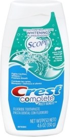 Dátum spotreby: do konca decembra 2017.Tekutý zubný gél Crest COMPLETE Multi-Benefit Scope s bieliacou zložkou predstavuje zmes zubných pást Crest a ústnej vody Crest Scope. Spája účinok zubnej pasty a ústnej vody, čo zaručuje kompletnú ochranu ústnej dutiny. .Zubné gély Crest používajte namiesto klasickej zubnej pasty po každom jedle alebo aspoň 2-krát denne. Gély sú fluoridované a chránia zuby pred zubným kazom.Hlavné výhody: .
